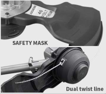 | 04MASQUE DE SÉCURITÉ et ligne à double torsion La housse de protection empêche efficacement les blessures pendant l'utilisation. |